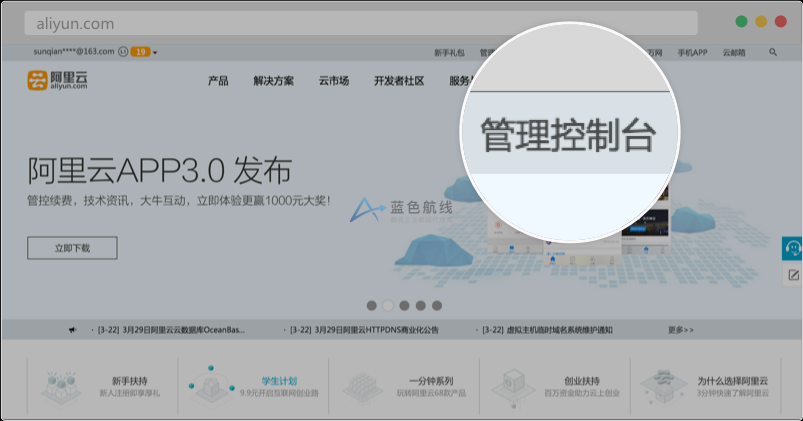 第二步:点击管理控制台左边主导航栏【产品与服务】—【域名】,在域名列表点击【解析】
